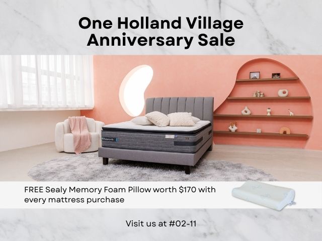 We are kicking off our anniversary sale at One Holland Village with a FREE Sealy Memory Foam pillow (worth $170) with every mattress purchase! T&Cs apply.