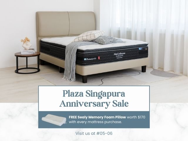 We are kicking off our anniversary sale at Plaza Singapura with a FREE Sealy Memory Foam pillow (worth $170) with every mattress purchase! T&Cs apply.